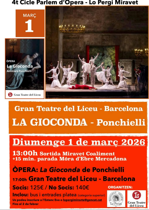 Organitzador Lo Pergi Web https://www.instagram.com/lopergi_miravet/ Llegir més Mes informació Llegir més Data 01 març 2026 Hora Activitat de tot el dia Municipi Miravet 4t Cicle Parlem d’Òpera Comparteix aquest esdeveniment + Afegir a Google Calendar Exportació a + iCal / Outlook