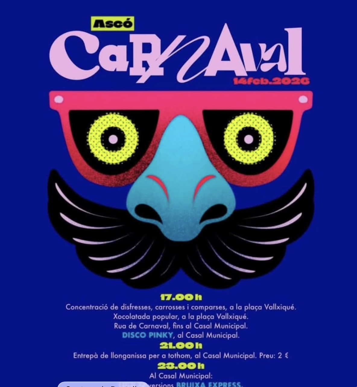 Organitzador Ajuntament d'Ascó Telèfon 977 405 006 Correu electrònic ajuntament@asco.cat Web https://www.asco.cat/ Llegir més Lloc Ascó Mes informació Llegir més Data 14 febr. 2026 Hora 18:00 - 21:00 Municipi Ascó Carnaval a Ascó Comparteix aquest esdeveniment + Afegir a Google Calendar Exportació a + iCal / Outlook