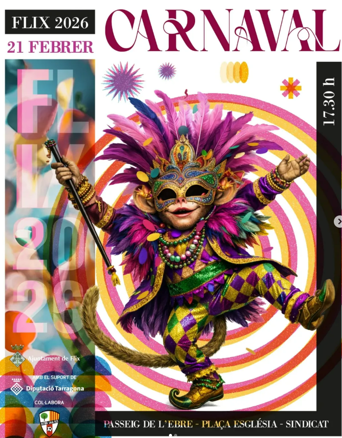 Organitzador Ajuntament de Flix Telèfon 977 410 153 Correu electrònic aj.flix@altanet.org Web http://www.flix.cat/ Llegir més Lloc Flix Flix, Espanya Mes informació Llegir més Data 21 febr. 2026 Hora 17:30 - 23:55 Municipi Flix CARNAVAL A FLIX Comparteix aquest esdeveniment + Afegir a Google Calendar Exportació a + iCal / Outlook