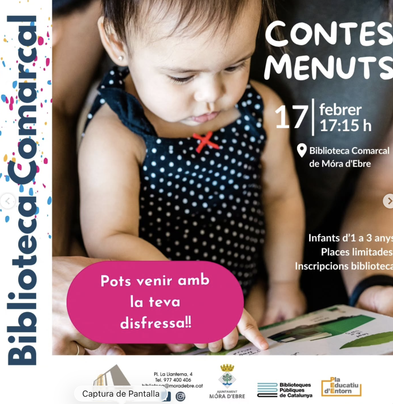 Organitzador Biblioteca Artur Cot Telèfon 977 400 406 Correu electrònic biblioteca@moradebre.cat Web http://www.moradebre.cat/equipament/biblioteca/ Llegir més Lloc Biblioteca Comarcal Móra d'Ebre, Espanya Mes informació Llegir més Data 17 febr. 2026 Hora 17:15 - 18:00 Municipi Móra d'Ebre Contes menuts Comparteix aquest esdeveniment + Afegir a Google Calendar Exportació a + iCal / Outlook