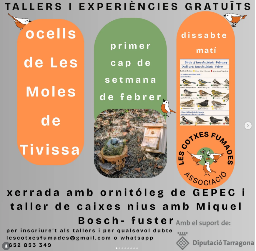 Llegir més Lloc Tivissa Tivissa, Espanya Mes informació Llegir més Data 07 febr. 2026 Municipi Tivissa Experiència d’ornitologia lúdica-educativa a la Mola d’en Beset Comparteix aquest esdeveniment + Afegir a Google Calendar Exportació a + iCal / Outlook