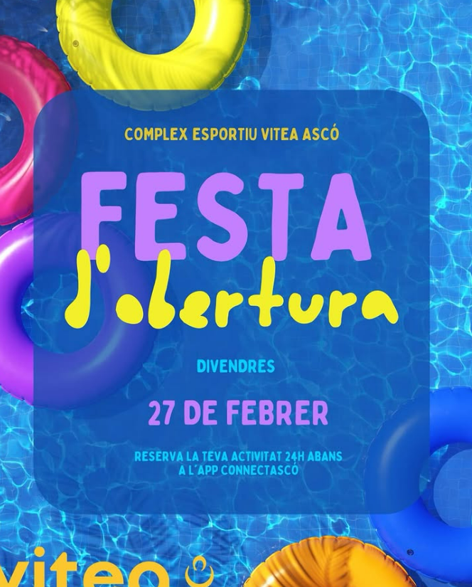 Llegir més Lloc Ascó Mes informació Llegir més Data 27 febr. 2026 Caducat! Hora 17:00 - 18:00 Municipi Ascó FESTA D’OBERTURA DE LES PISCINES! Comparteix aquest esdeveniment + Afegir a Google Calendar Exportació a + iCal / Outlook L'acte s'ha acabat.