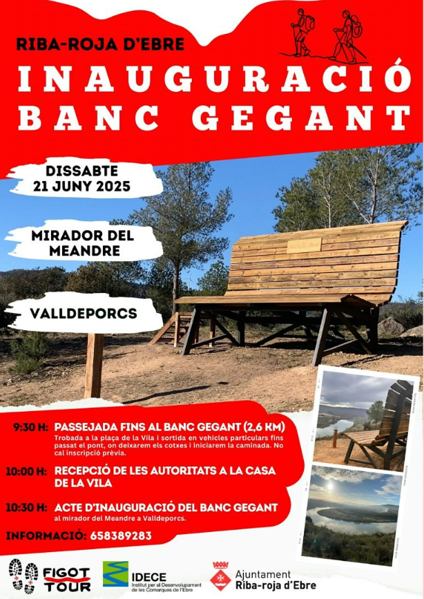 Organitzador Figot-T Senderisme Telèfon 658389283 Correu electrònic figottour@gmail.com Llegir més Lloc Riba-roja d'Ebre Riba-roja d'Ebre, Espanya Mes informació Llegir més Data 21 juny 2025 Caducat! Hora 09:30 - 15:00 Municipi Riba-Roja d'Ebre INAUGURACIÓ DEL BANC GEGANT DE RIBA-ROJA D’EBRE! Comparteix aquest esdeveniment + Afegir a Google Calendar Exportació a + iCal / Outlook L'acte s'ha acabat.