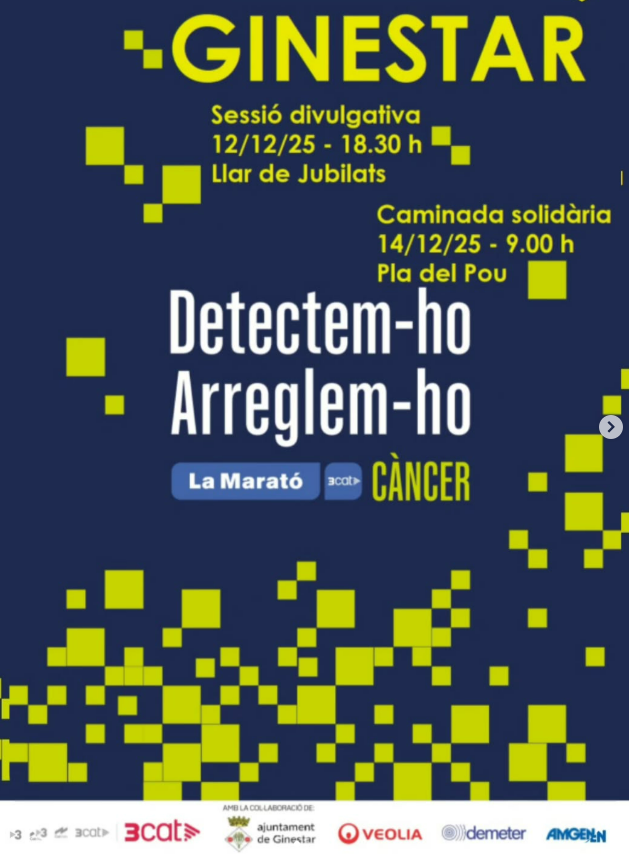 Organitzador Ajuntament de Ginestar Telèfon 977 409 005 Correu electrònic ginestar@ginestar.cat Web http://www.ginestar.cat Llegir més Lloc Ginestar Ginestar, Espanya Mes informació Llegir més Data 12 des. 2025 Hora 18:30 - 20:00 Municipi Ginestar La Marató 2025 a Ginestar Comparteix aquest esdeveniment + Afegir a Google Calendar Exportació a + iCal / Outlook