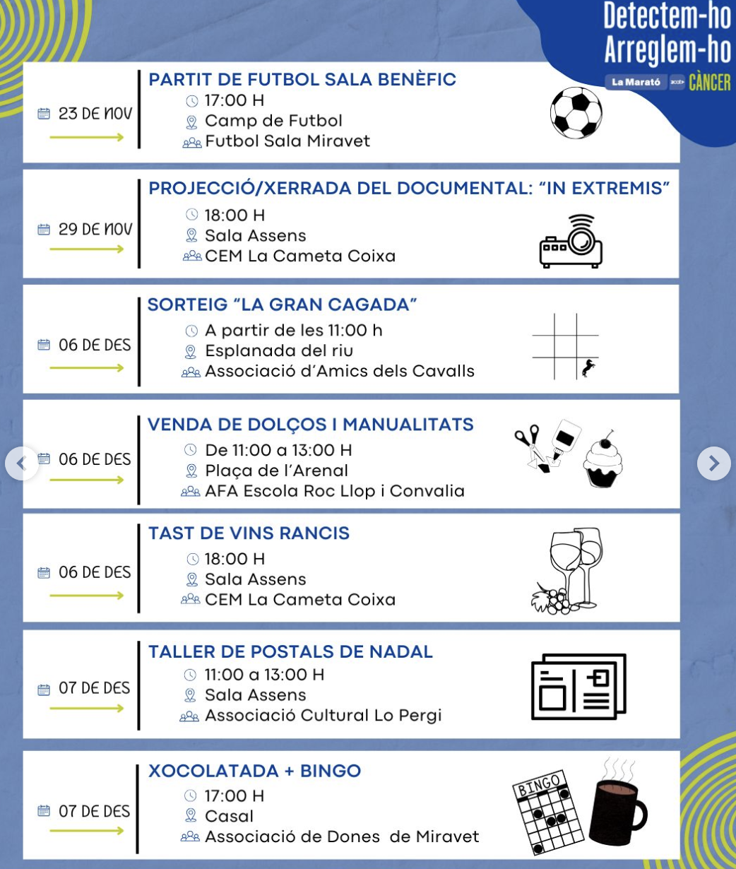 Organitzador Ajuntament de Miravet Telèfon 977 407 134 Correu electrònic aj.miravet@altanet.org Web http://www.turismemiravet.cat/ Llegir més Lloc Miravet Miravet, Espanya Mes informació Llegir més Data 29 nov. 2025 Municipi Miravet Miravet amb La Marató Comparteix aquest esdeveniment + Afegir a Google Calendar Exportació a + iCal / Outlook