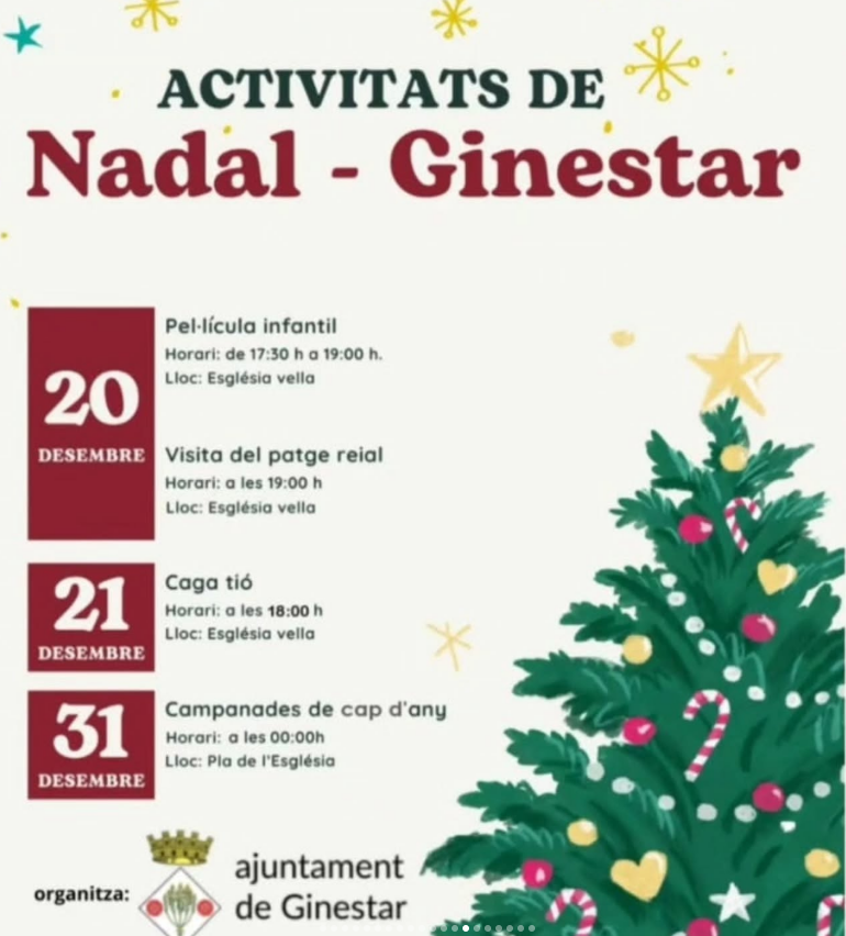 Organitzador Ajuntament de Ginestar Telèfon 977 409 005 Correu electrònic ginestar@ginestar.cat Web http://www.ginestar.cat Llegir més Lloc Ginestar Ginestar, Espanya Mes informació Llegir més Data 20 - 21 des. 2025 Caducat! Municipi Ginestar Nadal a Ginestar Comparteix aquest esdeveniment + Afegir a Google Calendar Exportació a + iCal / Outlook L'acte s'ha acabat.