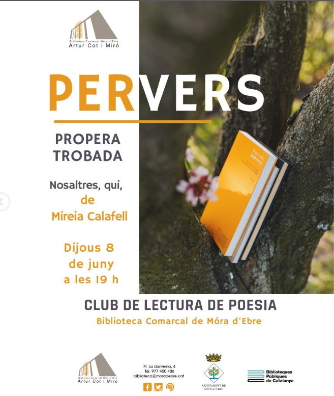 Organitzador Biblioteca Artur Cot Telèfon 977 400 406 Correu electrònic biblioteca@moradebre.cat Web http://www.moradebre.cat/equipament/biblioteca/ Llegir més Lloc Biblioteca Comarcal Móra d'Ebre, Espanya Mes informació Llegir més Data 08 juny 2023 Caducat! Hora 19:00 - 21:00 Municipi Móra d'Ebre PERVERS: ‘Nosaltres, qui’, de Mireia Calafell Comparteix aquest esdeveniment + Afegir a Google Calendar Exportació a + iCal / Outlook L'acte s'ha acabat. Etiquetes: biblioteca, móra d'ebre