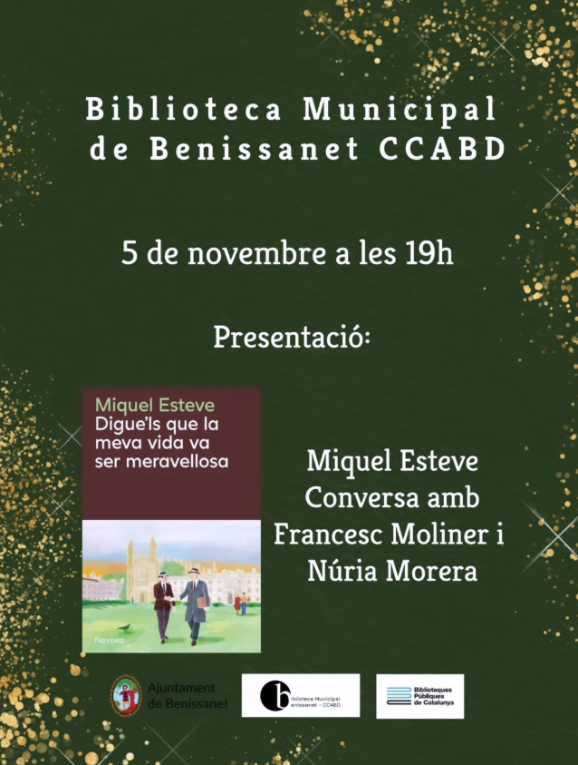 Organitzador Ajuntament de Benissanet Telèfon 977 407 005 Correu electrònic ajuntament@benissanet.cat Web http://www.benissanet.cat/# Llegir més Lloc Biblioteca- Centre Cultural Artur Bladé Benissanet Mes informació Llegir més Data 05 nov. 2025 Caducat! Hora 19:00 - 21:00 Municipi Benissanet Presentació del llibre: ‘Digue’ls que la meva vida va ser meravellosa’, de Miquel Esteve Comparteix aquest esdeveniment + Afegir a Google Calendar Exportació a + iCal / Outlook L'acte s'ha acabat.