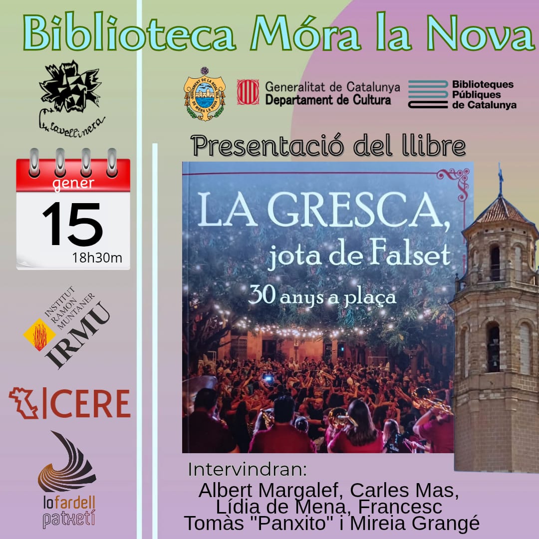 Organitzador Biblioteca de Móra la Nova Telèfon 977 414 101 Web https://www.facebook.com/bibliomoralanova/ Llegir més Lloc Biblioteca Municipal de Móra la Nova Móra la Nova, Espanya Mes informació Llegir més Data 15 gen. 2026 Hora 18:30 - 20:00 Municipi Móra la Nova Presentació del llibre “La Gresca” Comparteix aquest esdeveniment + Afegir a Google Calendar Exportació a + iCal / Outlook