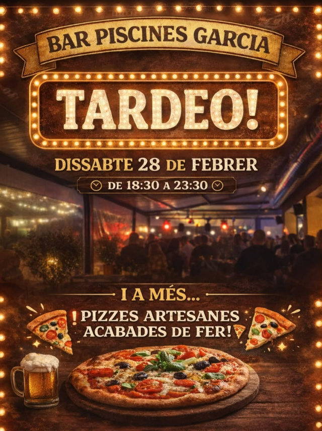 Llegir més Lloc Garcia Garcia, Espanya Mes informació Llegir més Data 28 febr. 2026 Hora 18:30 - 23:30 Municipi Garcia TARDEO al Bar Piscines Garcia Comparteix aquest esdeveniment + Afegir a Google Calendar Exportació a + iCal / Outlook