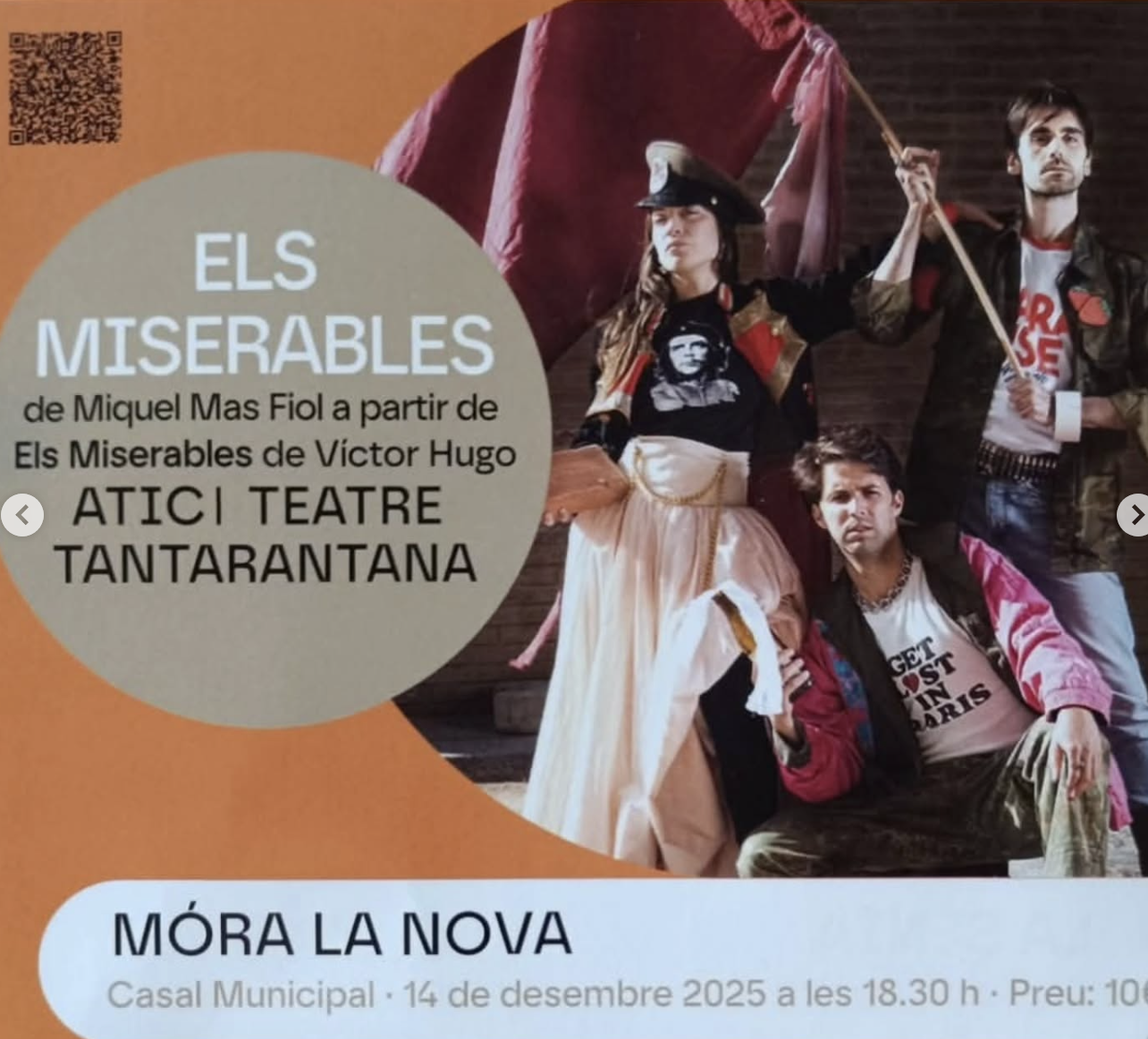 Organitzador Ajuntament de Móra la Nova Telèfon 977 400 347 Correu electrònic ajuntament@moralanova.cat Web http://www.moralanova.cat/ Llegir més Lloc Casal Municipal de Móra la Nova Móra la Nova, Espanya Mes informació Llegir més Data 14 des. 2025 Hora 18:30 - 20:00 Municipi Móra la Nova Teatre “Els Miserables” Comparteix aquest esdeveniment + Afegir a Google Calendar Exportació a + iCal / Outlook