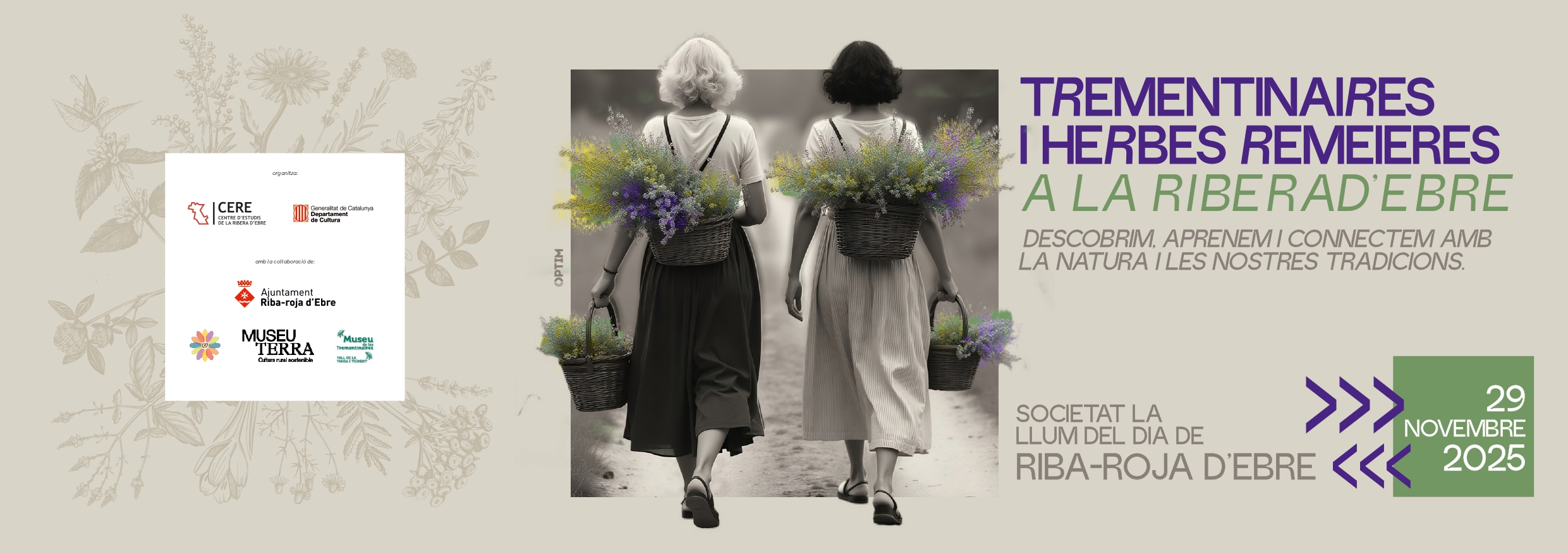 Organitzador Centre d'Estudis de la Ribera d'Ebre Telèfon 977 410 521 Correu electrònic cere@riberadebre.org Web http://www.riberadebre.org/ Llegir més Lloc Riba-roja d'Ebre Riba-roja d'Ebre, Espanya Mes informació Llegir més Data 29 nov. 2025 Hora Activitat de tot el dia Municipi Riba-Roja d'Ebre Trementinaires i herbes remeieres Comparteix aquest esdeveniment + Afegir a Google Calendar Exportació a + iCal / Outlook