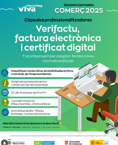 Organitzador Consell Comarcal de la Ribera d'Ebre Telèfon 977 401 851 Correu electrònic consell@riberaebre.org Web http://www.riberaebre.org/ Llegir més Lloc Consell Comarcal de la Ribera d'Ebre Móra d'Ebre, Espanya Mes informació Llegir més Data 21 oct. 2025 Caducat! Hora 15:00 - 17:00 Verifactu, factura electrònica i certificat digital Comparteix aquest esdeveniment + Afegir a Google Calendar Exportació a + iCal / Outlook L'acte s'ha acabat.