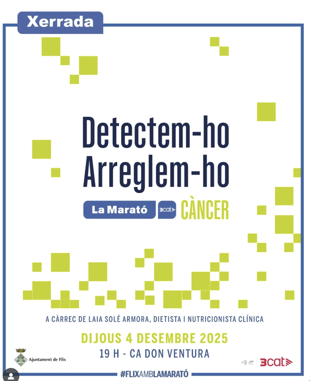 Organitzador Ajuntament de Flix Telèfon 977 410 153 Correu electrònic aj.flix@altanet.org Web http://www.flix.cat/ Llegir més Lloc Ca Don Ventura Flix, Espanya Mes informació Llegir més Data 04 des. 2025 Hora 18:00 - 21:00 Municipi Flix Xerrada: ‘Detectem-ho. Arreglem-ho’, amb Laia Solé Comparteix aquest esdeveniment + Afegir a Google Calendar Exportació a + iCal / Outlook