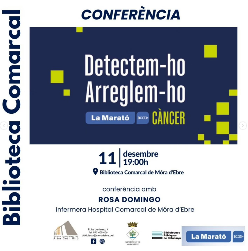 Organitzador Biblioteca Artur Bladé Telèfon 977 412 244 Correu electrònic biblioteca@flix.cat Web https://www.facebook.com/montse.flix.1 Llegir més Lloc Biblioteca Comarcal Móra d'Ebre, Espanya Mes informació Llegir més Data 11 des. 2025 Hora 19:00 - 20:00 Municipi Móra d'Ebre Xerrada La Marató Comparteix aquest esdeveniment + Afegir a Google Calendar Exportació a + iCal / Outlook